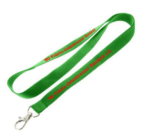 Unken-Schlüsselband, Polyester, grün mit rotem Druck, 20mm breit, inkl. Metallkarabiner.