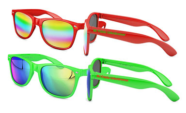 Unken-Brille in grün oder rot mit Aufdruck, Gläser verspiegelt